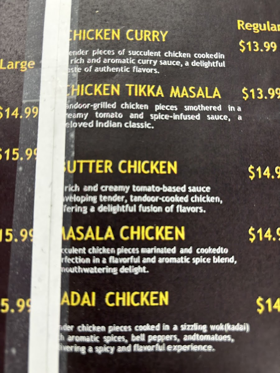 - Beverages: Offers traditional Indian drinks such as Chai, a spiced and milky tea, and Mango Lassi, a creamy mango and yogurt blend. Bottled purified water with electrolytes is also available.
